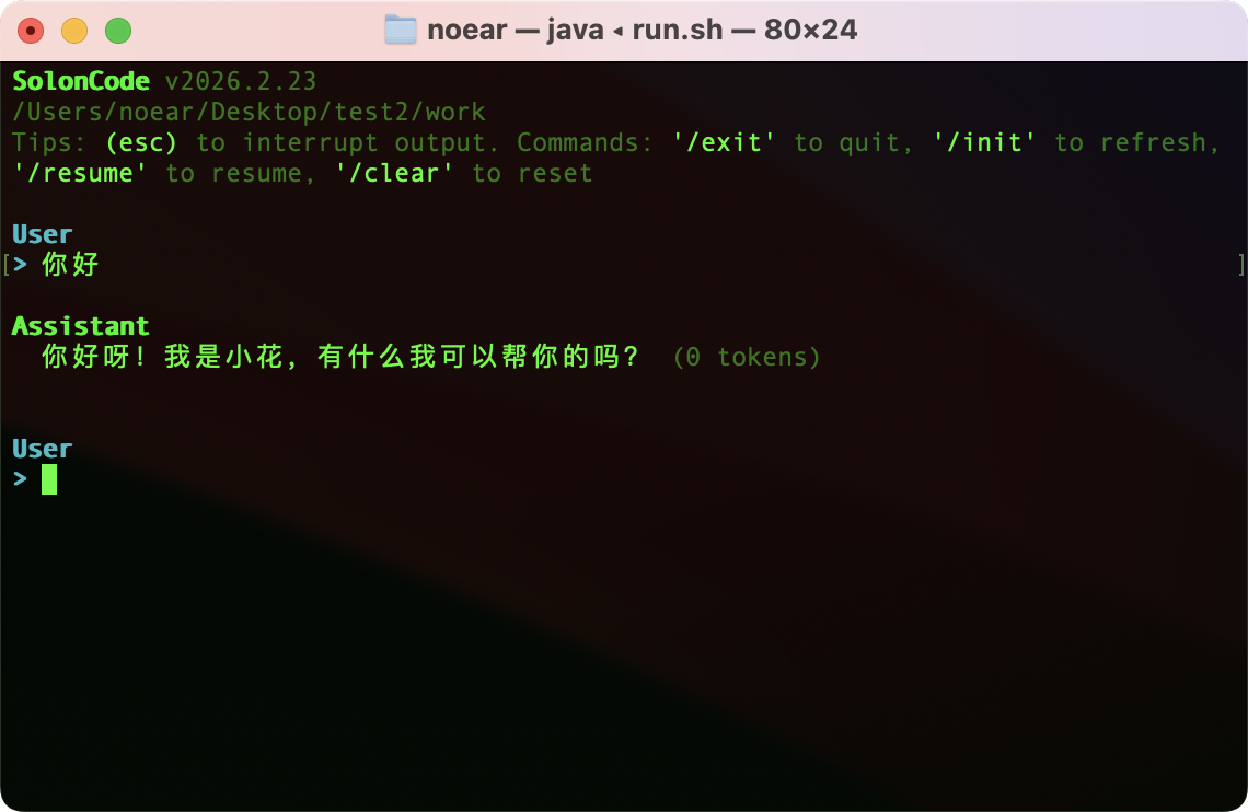 Solon Code 是基于 Solon AI(支持 Java8 到 Java25)框架构建的高性能、自主式 AI 终端助手。